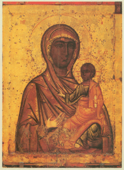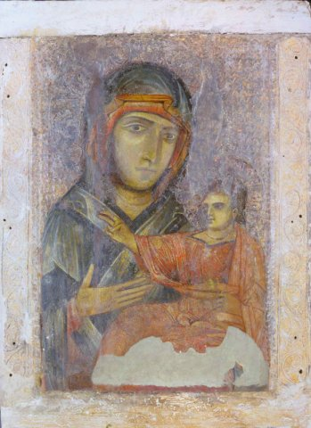 Comfort). Contact copy of original Hodegetria, encaustic on canvas, sent to western Emperor Valentinian III at the