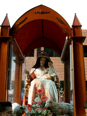 January 14La Divina Pastora, Santa Rosa, Lara, VenezuelaAround 1736, the pastor of Santa Rosa Catholic Church, in the town of the same name in central Venezuela, ordered a statue of the Immaculate Conception, but instead got a Holy Shepherdess statue ordered by the pastor of a church in nearby Barquisimeto. He immediately tried to send the statue on to its rightful destination, but it suddenly became so heavy no one could move it. And so Santa Rosa kept the Divina Pastora, now the patron saint of the state of Lara. On January 14, 1855, the statue was carried in procession during a cholera epidemic, which ended that same day. Since then, every January 14 a team of men carry the statues of the Holy Shepherdess, Child Jesus, and sheep in a large processional shrine from the Basilica in Santa Rosa to the Barquismeto cathedral, accompanied by millions of pilgrims, some barefoot. Photo of statue in 2005 procession from Universidad Centroccidental Lisandro Alvarado, www.ucla.edu.ve Also celebrated this date: