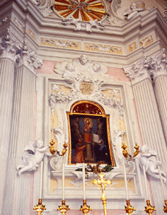 January 27Beata Vergine del Pilar, Castenaso, Bologna, Emilia Romagna, ItalyCastenaso is a small town six miles outside Bologna on the Idice River. The chapel of Santa Maria delle Tombe (St. Mary of the Tombs), built in 1315, came into the possession of the Spanish College of Bologna some 50 years later. In 1672 a painting by Giovanni Battista Bolognini was hung in the chapel, depicting Our Lady of the Pillar, the famous Black Virgin of Zaragoza, Spain, with St. James the Greater and St. Peter Arbues, an alumnus of the college. On January 27, 1699, Maria Maddalena Azzaroni, oldest of five children, hurried by the chapel on her way to borrow some oil from her aunt, without stopping to say her customary prayer at the spot. Hearing a voice say, "Maria Maddalena, have you given up your devotions to the Madonna?" she went back and prayed before the image. The Madonna came out of the painting, holding out her hands, and asked the girl to remain always devoted to her. Four years later, when the Church had approved the miracle and built a baroque sanctuary there, Maddalena entered a convent. Sources: