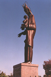 Picture of the bronze statue outside Our Lady of Refuge