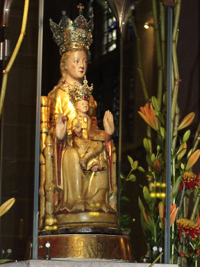 its statue of Mary, Comforter of the Afflicted. Carved of alder wood