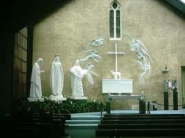 1879, fourteen people saw three figures bathed in light against the rear