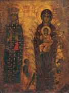 In Russia, the Virgin of the Burning Bush is usually depicted against superimposed diamonds, green for the bush and red for the fire. Such icons (right) are often hung in kitchens as protection from fire. The Russian Orthodox Church honors the Unburnt Bush Icon of the Most Holy Theotokos on the same feast day as Moses: September 4 in the old calendar, September 17 in the new. (Sinai icon from The Getty, www.getty.edu; Russian icon from Espergaerde Gymnasium og HF, www.eg-gym.dk.) Also commemorated this date: