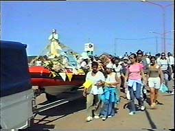Right: Our Lady in her boat, en route to the sea, from