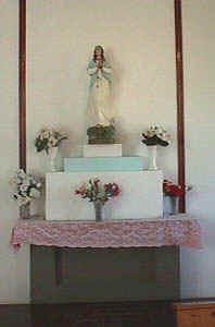 Left: Statue in new parish church of Stella Maris (opened