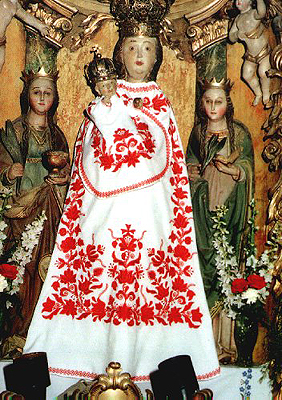 Our Lady of the New Advent, USA Andocsi Szuz Mária, Somogy, Hungary Virgen de la Soledad, Oaxaca, Mexico Virgen del Carmen, Santiago, Chile Virgen de la Caridad, El Cobre, Cuba Virgen de la Paz, Trujillo, Venezuela Madonna delle Grazie, Tuscany, Italy